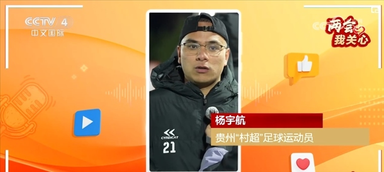 貴州“村超”足球運動員楊宇航說,希望國家多多支持各個鄉(xiāng)鎮(zhèn)級別的體育文化。