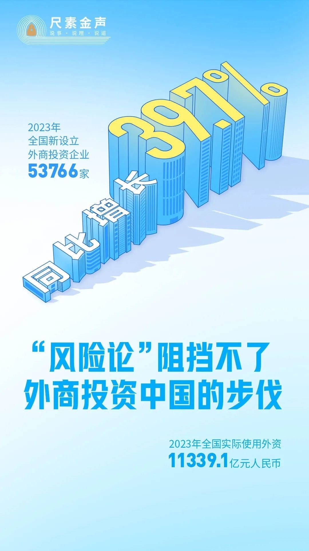 事實(shí)證明,任何抹黑誤導(dǎo)都阻擋不了外商來華投資步伐,中國制造展現(xiàn)出的強(qiáng)大韌性、活力和潛力,不會(huì)因花樣翻新的“唱衰”論調(diào)而改變。2023年,全國實(shí)際使用外資金額11339.1億元人民幣,仍處歷史高位;全國新設(shè)立外商投資企業(yè)53766家,同比增長39.7%。中國一直都是外商投資興業(yè)的沃土。