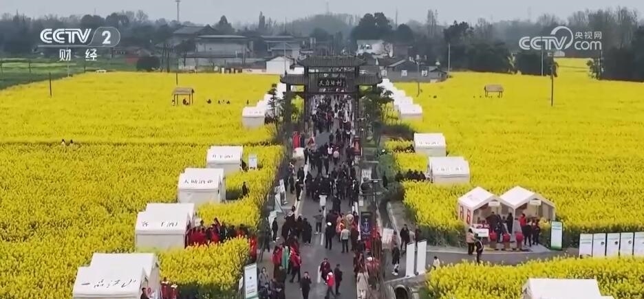 除了“花田火鍋”,在以油菜花田為背景的鄉(xiāng)村道路上,各類(lèi)裝滿(mǎn)當(dāng)?shù)靥厣r(nóng)產(chǎn)品的攤位依次擺開(kāi)。游客們迎著花香趕大集,帶走春日特有的伴手禮。