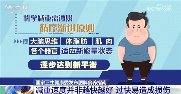 指南指出,科學(xué)減重需遵照循序漸進(jìn)的原則,使大腦思維、體脂肪、肌肉和各個(gè)器官適應(yīng)新能量狀態(tài),逐步達(dá)到新平衡。減重速度并非越快越好,過快的減重速度易對機(jī)體器官組織造成損傷,甚至危及生命。較為理想的減重目標(biāo)應(yīng)該是6個(gè)月內(nèi)減少當(dāng)前體重的5%—10%,合理的減重速度為每月減2公斤—4公斤。