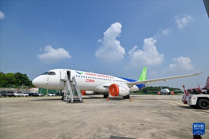 3月13日,中國國產(chǎn)商用飛機(jī)C919大飛機(jī)在馬來西亞雪蘭莪州的蘇丹阿卜杜勒·阿齊茲·沙阿機(jī)場作靜態(tài)展示。新華社發(fā)(張紋綜攝)