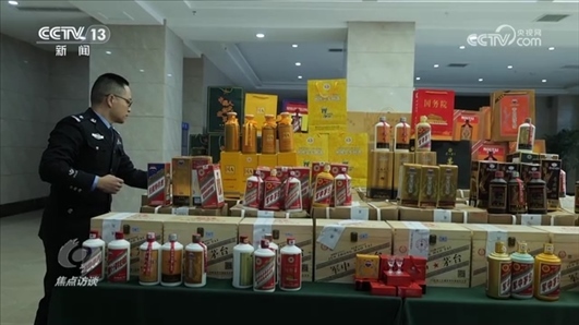 曾光:“我們在全國五個省市開展了相關(guān)全面收網(wǎng)工作,一共抓獲犯罪嫌疑人54名,搗毀生產(chǎn)灌裝窩點三個、銷售經(jīng)營場所三個、倉儲倉庫三個,現(xiàn)場查扣成品的知名假酒一共接近11600瓶?!?/p>