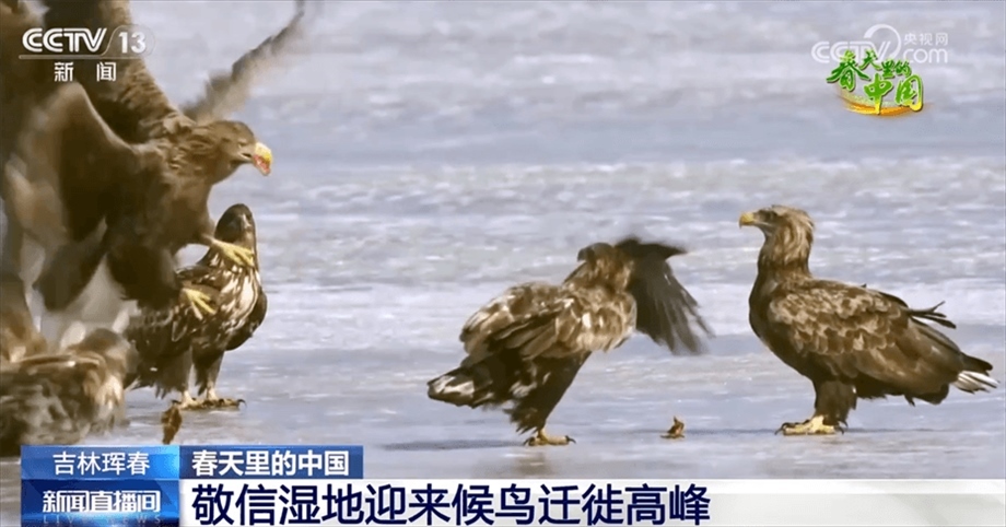 隨著氣溫回暖,吉林琿春敬信濕地迎來大批遷徙候鳥。白枕鶴、虎頭海雕、禿鷲等稀有鳥類爭相亮相,成為春日里一道亮麗的風(fēng)景。
