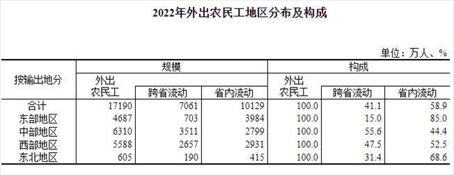 外出務(wù)工人員(農(nóng)民工)是我國流動人口的主體之一。國家統(tǒng)計局發(fā)布的《2022年農(nóng)民工監(jiān)測調(diào)查報告》顯示,2022年全國農(nóng)民工總量2.96億人,外出農(nóng)民工1.72億人,其中跨省流動7061萬人。