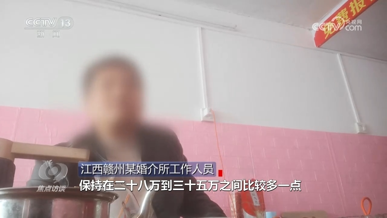江西贛州某婚介所工作人員:“我們這邊彩禮有點偏貴,保持在二十八萬到三十五萬之間,最多的彩禮三十八萬?!?/p>