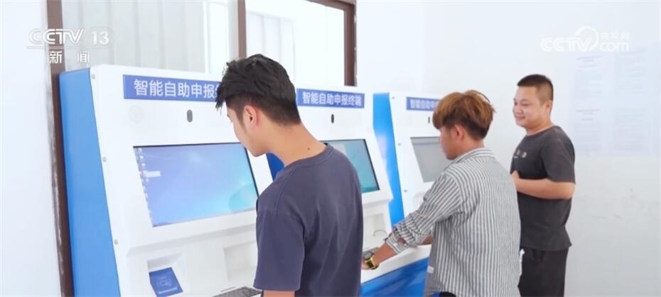 記者來到關(guān)累港時(shí),看不到昔日肩挑背扛的景象,一輛輛裝滿貨品的貨車停在交易區(qū)等待查驗(yàn),申報(bào)大廳內(nèi),來自周邊村寨合作社的邊民們正穿梭在各業(yè)務(wù)辦理窗口,為進(jìn)出口貨物辦理通關(guān)手續(xù)。