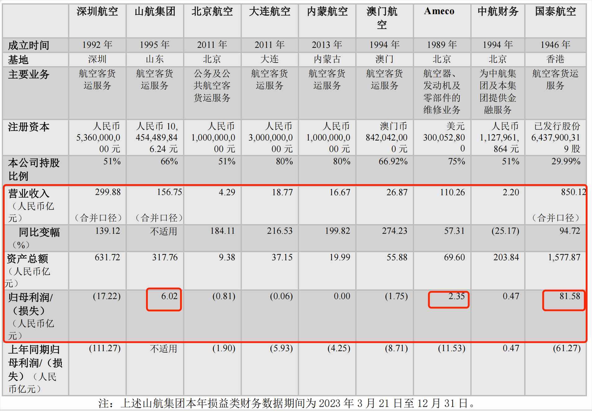 具體來看國航,分別控股和持股的山航集團與國泰航空實現(xiàn)盈利。山航集團去年營收156.75億元,歸母凈利潤為6.02億元;國泰航空去年營收850.12億元,同比增超九成,歸母凈利潤為81.58億元,上年同期為虧損61.27億元;內(nèi)蒙古航司實現(xiàn)營收16.67億元,同比增近2倍,歸母凈利潤為0元,上年同期為虧損4.25億元。航空器維修公司Ameco去年營收110.26億元,同比增57.31%,實現(xiàn)歸母凈利潤為2.35億元,去年同期為虧損11.53億元。