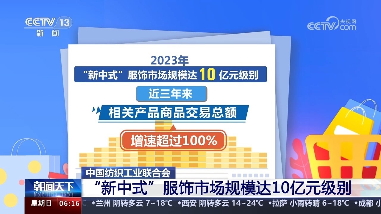 中國(guó)紡織工業(yè)聯(lián)合會(huì)數(shù)據(jù)顯示,2023年“新中式”服飾市場(chǎng)規(guī)模達(dá)10億元級(jí)別,近三年來(lái),相關(guān)產(chǎn)品商品交易總額增速超過(guò)100%。今年1月以來(lái),在互聯(lián)網(wǎng)銷售平臺(tái)上“新中式”“宋錦”的搜索量環(huán)比分別增長(zhǎng)近6倍和近20倍。