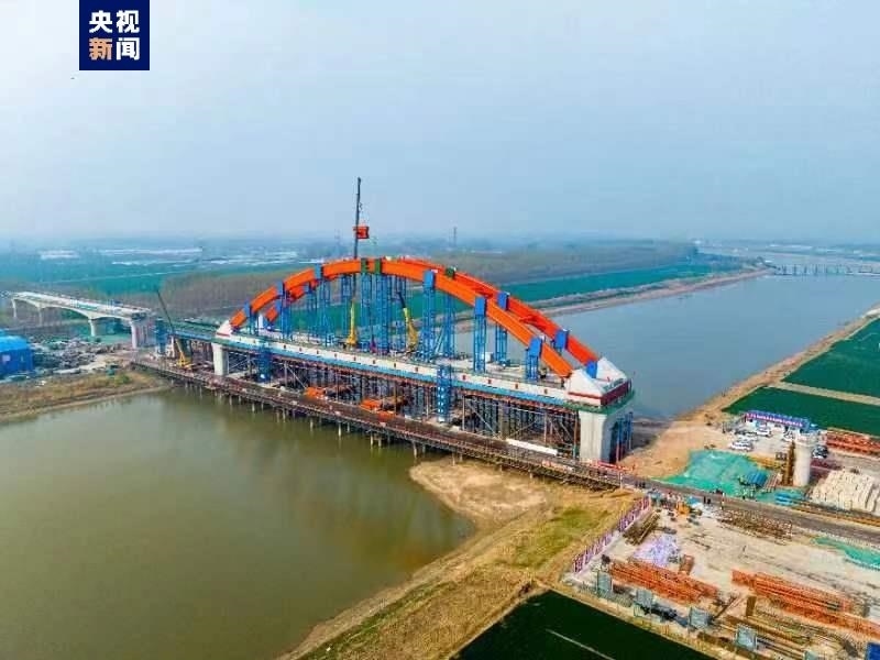 4月10日,濟濱高鐵全線首個系桿拱橋——濟商1號特大橋跨徒駭河144米系桿拱順利合龍,為下一步系桿拱橋梁施工、鋪軌奠定了堅實基礎(chǔ)。