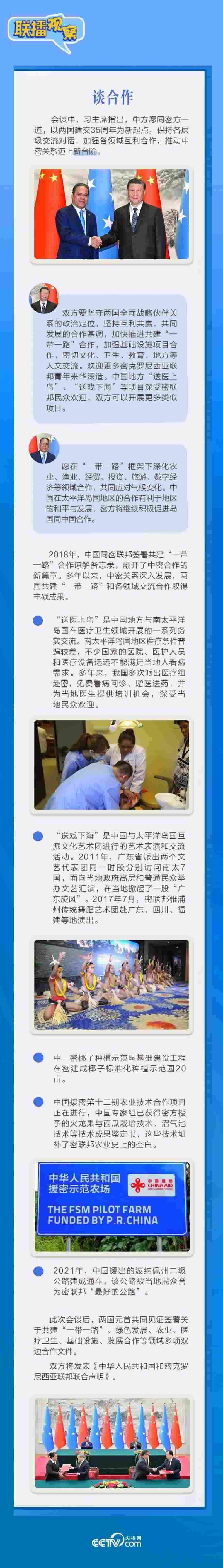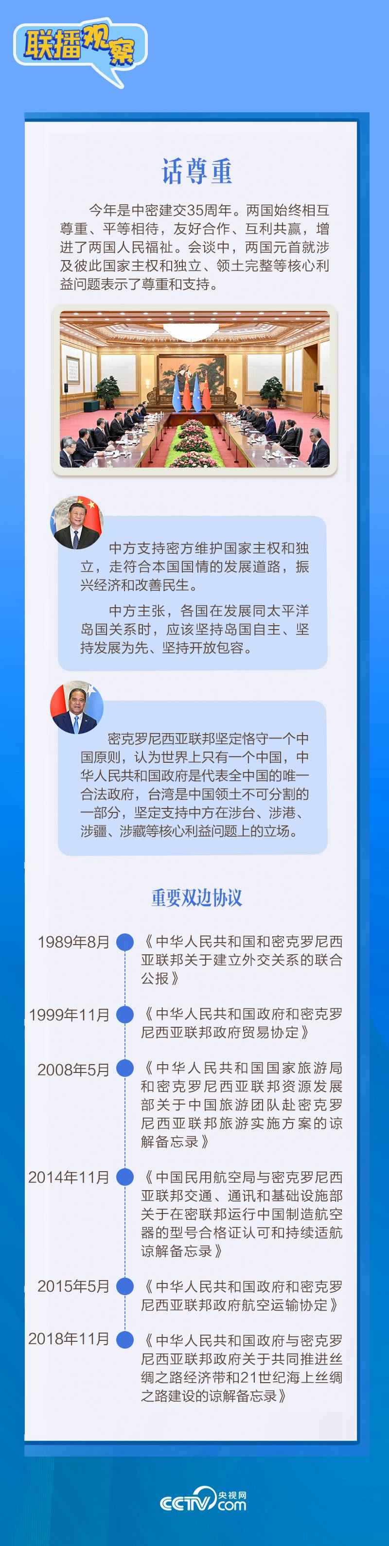 應習近平主席邀請,密克羅尼西亞聯(lián)邦總統(tǒng)韋斯利·西米納于4月5日至12日對中國進行國事訪問。4月9日下午,習近平主席在北京人民大會堂同西米納總統(tǒng)舉行會談,就雙邊關(guān)系發(fā)展及共同關(guān)心的問題深入交換意見。雙方會談哪些細節(jié)值得關(guān)注?央視網(wǎng)《聯(lián)播觀察》帶您了解。