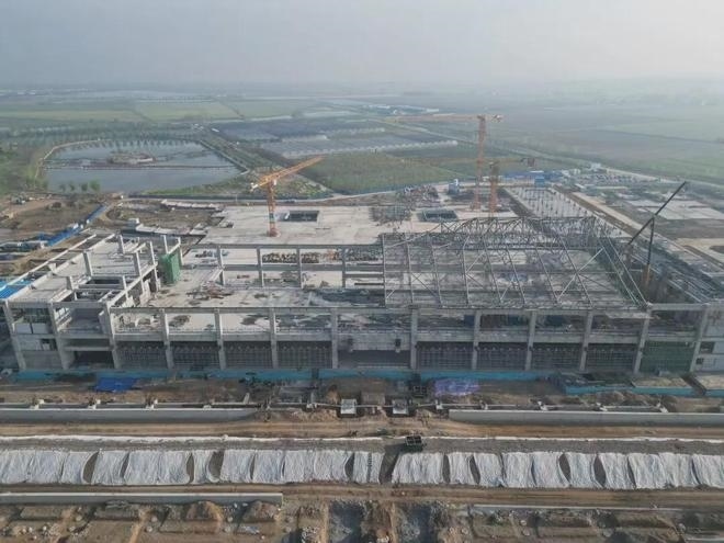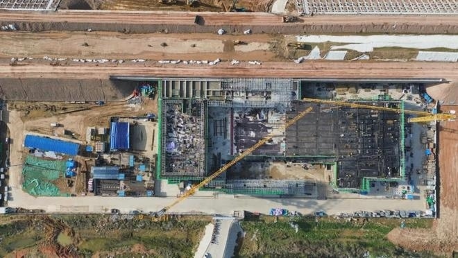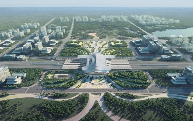 車站采用鋼結(jié)構(gòu)加鋁鎂錳板金屬屋面,整體空間造型提煉和吸取了明代傳統(tǒng)建筑造型特點(diǎn),結(jié)合傳統(tǒng)與現(xiàn)代的設(shè)計(jì)手法,打造具有“風(fēng)水寶地,祥瑞所鐘”設(shè)計(jì)理念的地域性地標(biāo)建筑。目前,站房主體結(jié)構(gòu)已施工完畢,正在進(jìn)行屋面鋼桁架施工。