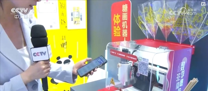 借助消博會這個(gè)平臺,不僅有很多國外產(chǎn)品走進(jìn)來,也有更多國貨走出去。3D打印機(jī)能打印食物,還能做糖畫,短短幾十秒,一個(gè)精致的龍形糖畫就做好了。把中國傳統(tǒng)美食和現(xiàn)代科技相結(jié)合,這樣的創(chuàng)新形式讓人眼前一亮。工作人員介紹,現(xiàn)在這款機(jī)器已經(jīng)遠(yuǎn)銷到美國??萍假x予國貨新活力,讓非遺走得更遠(yuǎn)。
