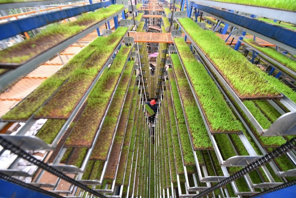 2024年3月21日,村民在湖南省衡山縣白果鎮(zhèn)國豐農(nóng)機服務(wù)專業(yè)合作社育秧。新華社記者 趙眾志 攝