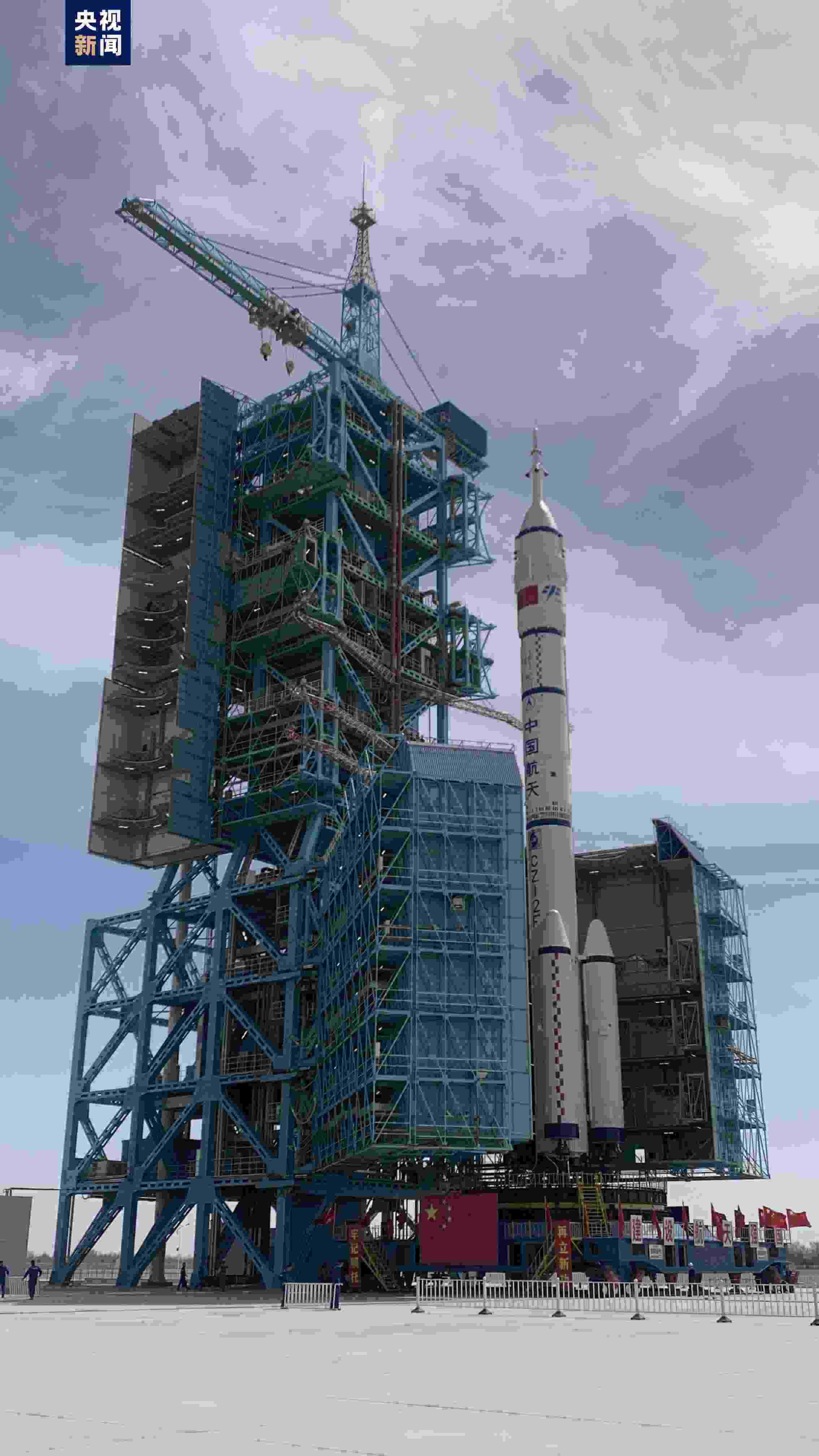 據(jù)中國載人航天工程辦公室消息,北京時間2024年4月17日,神舟十八號載人飛船與長征二號F遙十八運載火箭組合體已轉(zhuǎn)運至發(fā)射區(qū)。