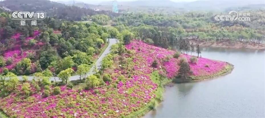 四月芳菲,春光正盛。在江蘇南京銀杏湖,800萬株杜鵑花迎著明媚的春光次第綻放。遠(yuǎn)遠(yuǎn)望去,連片的杜鵑花點(diǎn)綴著朱紅、淡粉與純白,密密匝匝擁在一起,把湖光山景染成了斑斕的畫卷。園區(qū)里的千畝杜鵑花花期將持續(xù)到五月初。