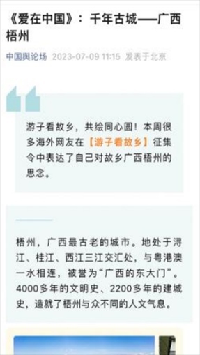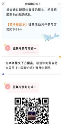 “早安中國切口新穎,有文化屬性和微記錄的氣質(zhì)?!薄懊看纹驳慕Y(jié)語字幕,都是從哪里選的?每天,都給我學(xué)習(xí)的機(jī)會?!薄皩I(yè)微記錄是媒體融合最寬廣的路。”……《早安中國》真真切切地緩解了許多海內(nèi)外網(wǎng)友的故土思鄉(xiāng)情切,也收到了來自四面八方的認(rèn)可及反饋。《中國輿論場》節(jié)目持續(xù)發(fā)出“游子看故鄉(xiāng)”征集令,請海外華僑華人說出對家鄉(xiāng)的思念和心中最想“打卡”的祖國美景。