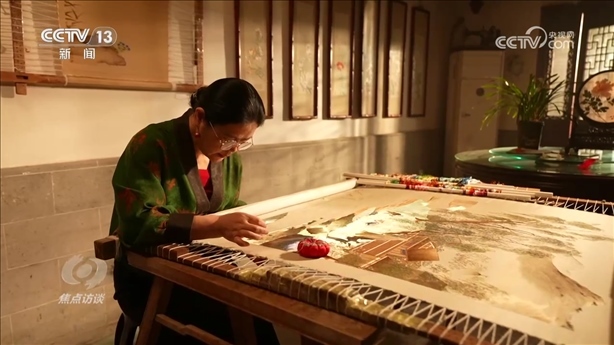 盧建英:“當時我在繡一幅《桃花太平鳥圖》,習(xí)近平總書記走到了我的繃架前。他說你好,很親切,很和藹,看得非常仔細。他說中華文化的傳承力有多強,通過這個蘇繡可以看出來,像這樣的功夫充分體現(xiàn)出中國人的韌性、耐心和定力,這是中華民族精神的一部分,能得到總書記的認可,真的是倍感榮耀?!?/p>