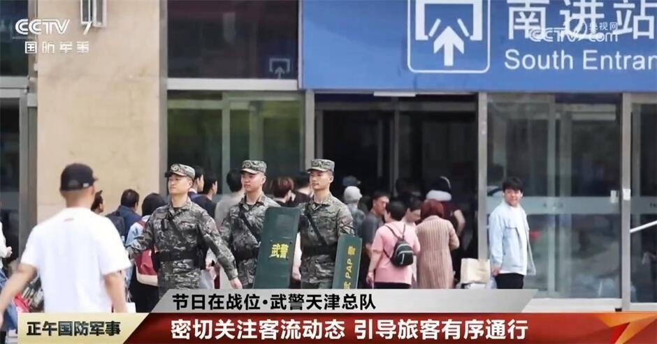 近期,天津站日均客流量達(dá)10萬人次,武警天津總隊(duì)某支隊(duì)執(zhí)勤官兵在車站廣場、進(jìn)站口、候車大廳等人流密集區(qū)域設(shè)置巡邏警戒小組,嚴(yán)密監(jiān)視客流動態(tài),引導(dǎo)旅客有序通行。