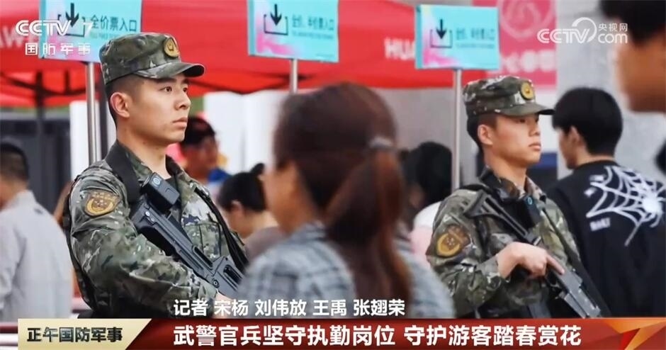 游客王女士稱:“這里的花很漂亮,氛圍很好,尤其是看到有武警官兵在守護(hù)我們的時候,心里覺得特別踏實(shí),非常有安全感,為人民子弟兵點(diǎn)贊?!?/p>
