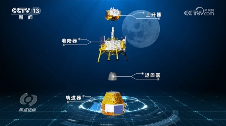 嫦娥六號探測器由4部分組成,分別是負(fù)責(zé)從月面起飛的上升器、承擔(dān)落月和采集任務(wù)的著陸器、將帶著月壤樣品再入地球的返回器以及承擔(dān)地月往返運(yùn)輸任務(wù)的軌道器??蒲腥藛T為嫦娥六號設(shè)計了11個階段的飛行任務(wù),每個階段都環(huán)環(huán)相扣。