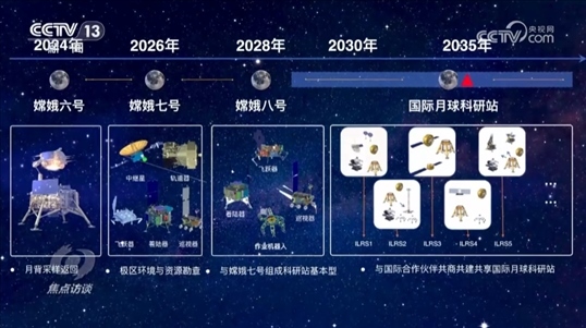 吳偉仁:“以月球南極為核心,打造一個國際上共同的月球空間站,爭取以月球南極突破,到全月面探測,研制新的月球車,能夠每小時達(dá)到上百公里的速度,在月球很廣闊的區(qū)域里面馳騁,對全月球進(jìn)行探測。下一步我們希望以月球?yàn)榛A(chǔ)向火星進(jìn)軍,為人類未來登陸火星做準(zhǔn)備?!?/p>