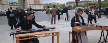 凱旋門下,神奇的一幕發(fā)生了,中國(guó)藝術(shù)家和法國(guó)軍樂隊(duì)同框演奏,巴黎街頭同時(shí)回蕩著中法兩國(guó)的音樂聲。