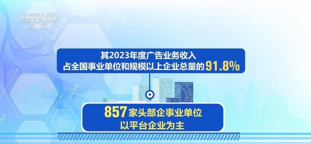 據(jù)了解,857家頭部企事業(yè)單位以平臺企業(yè)為主,數(shù)據(jù)顯示其2023年度廣告業(yè)務(wù)收入占全國事業(yè)單位和規(guī)模以上企業(yè)總量的91.8%。其中,頭部平臺企業(yè)廣告業(yè)務(wù)收入占其營業(yè)收入50%以上。平臺企業(yè)的廣告業(yè)務(wù)不僅帶動廣大中小微廣告企業(yè)構(gòu)建起產(chǎn)業(yè)鏈,也為其開展人工智能、新能源、云計算等技術(shù)創(chuàng)新提供了資金保障。