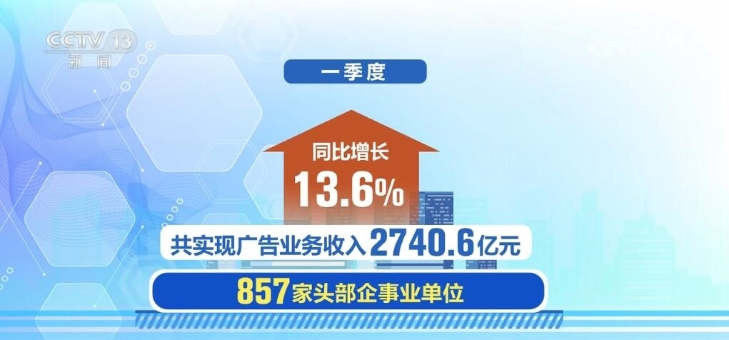 市場監(jiān)管總局公布數(shù)據(jù)顯示,一季度,857家頭部企事業(yè)單位共實現(xiàn)廣告業(yè)務(wù)收入2740.6億元,同比增長13.6%。