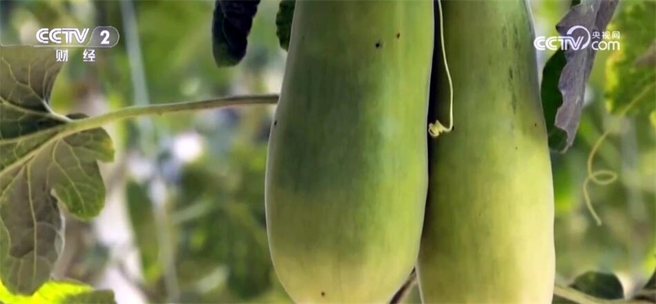 新品甜瓜好吃又好賣,例如黃金25就是張愛英家賣的最好的甜瓜,在這樣一根瓜藤上,一茬兒只能生長一個瓜,一個產(chǎn)季能產(chǎn)出三茬兒瓜,一茬兒比一茬更大。