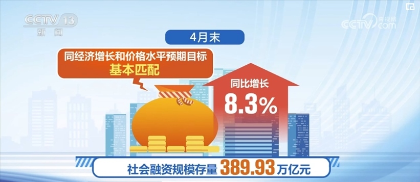 4月末,社會融資規(guī)模存量389.93萬億元,同比增長8.3%,同經(jīng)濟增長和價格水平預期目標基本匹配。1—4月,社會融資規(guī)模增量累計為12.73萬億元,處于歷史同期較高水平。
