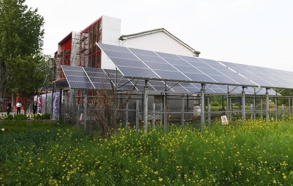 2024年4月17日拍攝的蘭考縣三義寨鄉(xiāng)付樓村農(nóng)家光伏發(fā)電設(shè)施。新華社記者 朱祥 攝