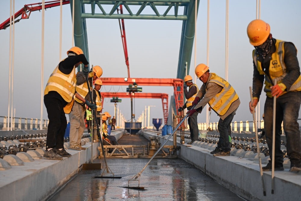 2024年3月20日,中鐵三局建設(shè)者在滬蘇湖鐵路東苕溪特大橋上施工。滬蘇湖鐵路起自上海虹橋站,途經(jīng)江蘇省蘇州市,終至浙江省湖州市湖州站。項目建成運營后,將進(jìn)一步完善區(qū)域路網(wǎng)布局,促進(jìn)沿線經(jīng)濟社會發(fā)展和長三角一體化高質(zhì)量發(fā)展。新華社記者 黃宗治 攝