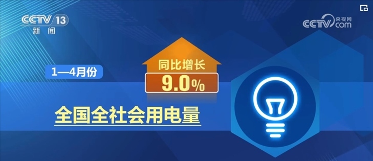 1至4月全社會(huì)用電量同比增長9.0%