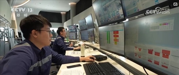 作為系統(tǒng)優(yōu)化師,范春奇全神貫注地盯著3個屏幕。左邊屏幕是碼頭調(diào)度指令,右邊是現(xiàn)場監(jiān)控的實(shí)時畫面,中間是智能水平運(yùn)輸系統(tǒng),顯示著所有車輛的運(yùn)行軌跡。
