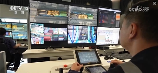 在天津港北疆港區(qū)智能化集裝箱碼頭,隨著貨輪的靠港,長達(dá)15.6米的無人駕駛運(yùn)輸機(jī)器人就忙碌起來。此時,在智控中心里裝卸操控、車輛調(diào)度,一個個指令通過鍵盤、按鈕精準(zhǔn)傳達(dá)到碼頭。