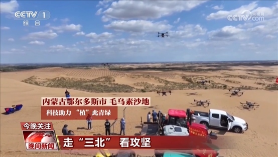 央視網消息:在內蒙古毛烏素沙地,無人機飛播、機器人栽種正當時,科技助力“植”此青綠。