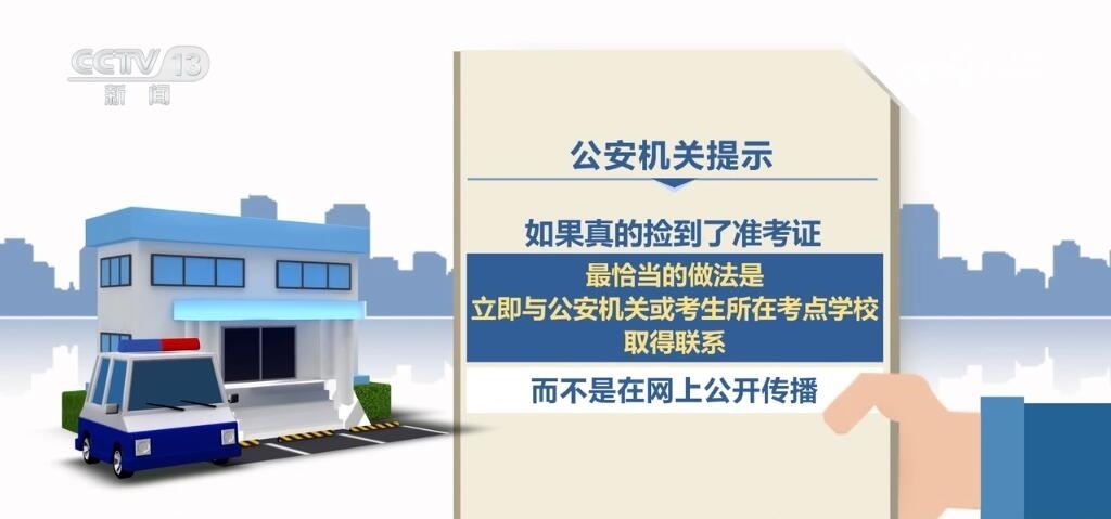 公安機關提示:如果真的撿到了準考證,最恰當?shù)淖龇ㄊ橇⒓磁c公安機關或考生所在考點學校取得聯(lián)系,而不是在網(wǎng)上公開傳播。另外,如果看到此類信息的網(wǎng)友,未經(jīng)核實的情況下不轉發(fā)、不跟貼、不評論,不撥打相關聯(lián)系電話,謹防上當受騙。