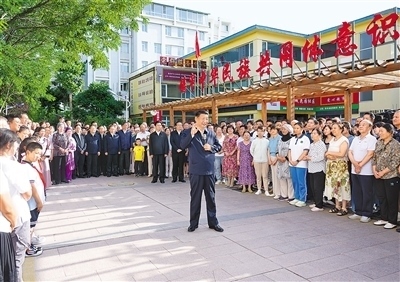 傍晚時(shí)分,社區(qū)廣場十分熱鬧,居民們看見總書記來了,紛紛圍攏過來,熱烈鼓掌歡迎。習(xí)近平親切地對(duì)大家說,時(shí)隔4年,我再次來寧夏看望各族干部群眾,見到大家非常高興!中華民族是一個(gè)大家庭,各族人民要像石榴籽一樣緊緊抱在一起。要不斷鑄牢中華民族共同體意識(shí),把各族人民的心緊緊連在一起,把各方面的力量廣泛凝聚到一起,共同推進(jìn)中國式現(xiàn)代化,共襄中華民族偉大復(fù)興的盛舉。