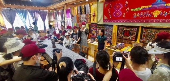 在廣西非遺形象體驗(yàn)店“湘光織錦坊”的研學(xué)活動(dòng)現(xiàn)場(chǎng)。(受訪者供圖)