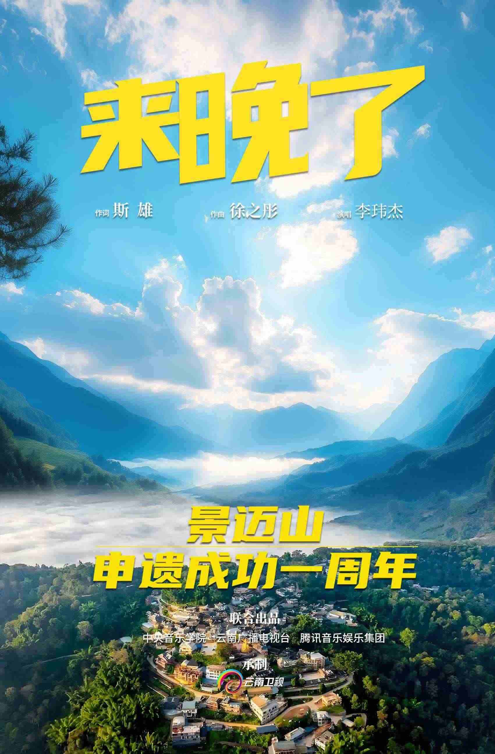 為慶祝景邁山申遺成功一周年,實景版MV《來晚了》上線啦!實景版歌曲由資深媒體人斯雄作詞,中央音樂學院徐之彤教授作曲,云南音樂人李瑋杰演唱。中央音樂學院、云南廣播電視臺、騰訊音樂娛樂集團聯(lián)合出品,云南衛(wèi)視承制。