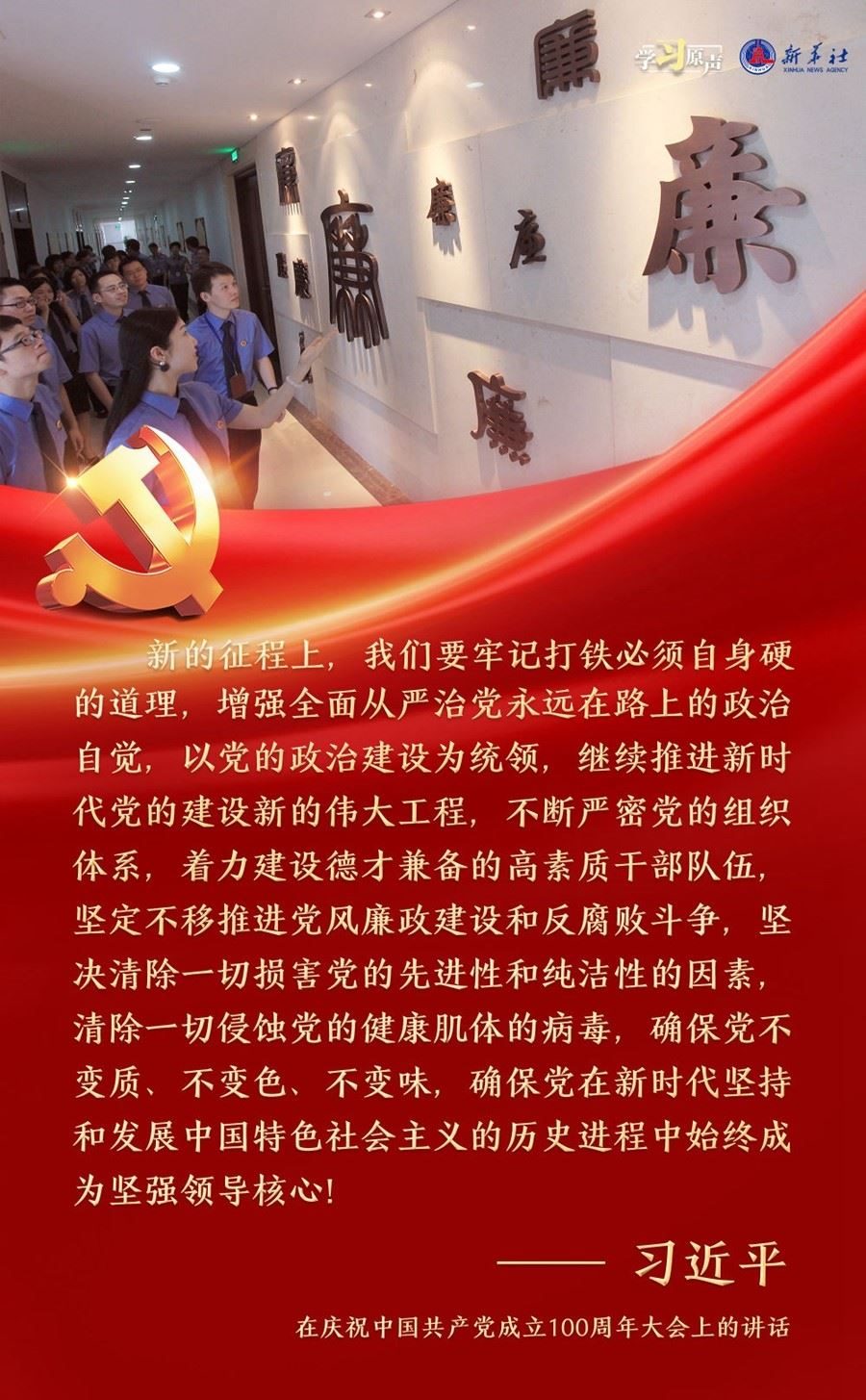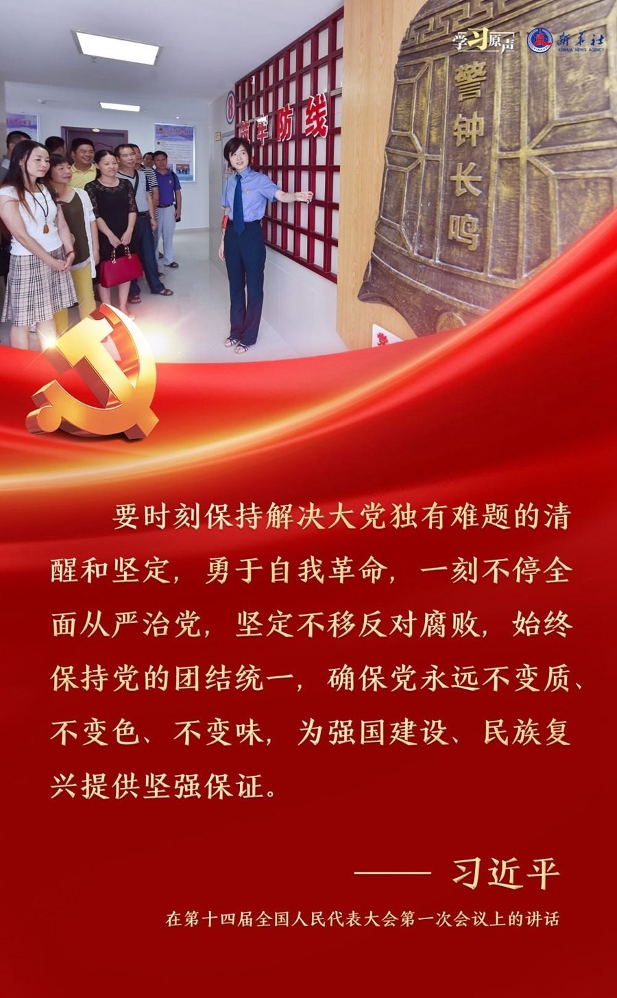 習(xí)近平總書記強(qiáng)調(diào),面對新征程上的新挑戰(zhàn)新考驗(yàn),我們必須高度警省,永遠(yuǎn)保持趕考的清醒和謹(jǐn)慎,馳而不息推進(jìn)全面從嚴(yán)治黨,使百年大黨在自我革命中不斷煥發(fā)蓬勃生機(jī),始終成為中國人民最可靠、最堅(jiān)強(qiáng)的主心骨。