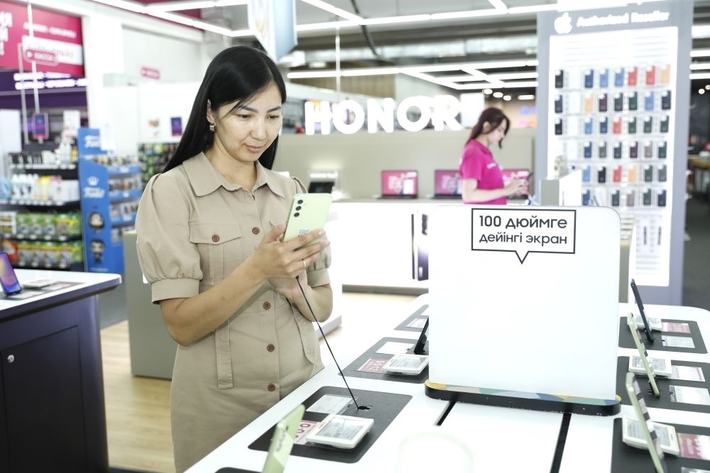 2024年7月1日,顧客在哈薩克斯坦阿斯塔納試用中國(guó)品牌手機(jī)。新華社發(fā)(奧斯帕諾夫攝)