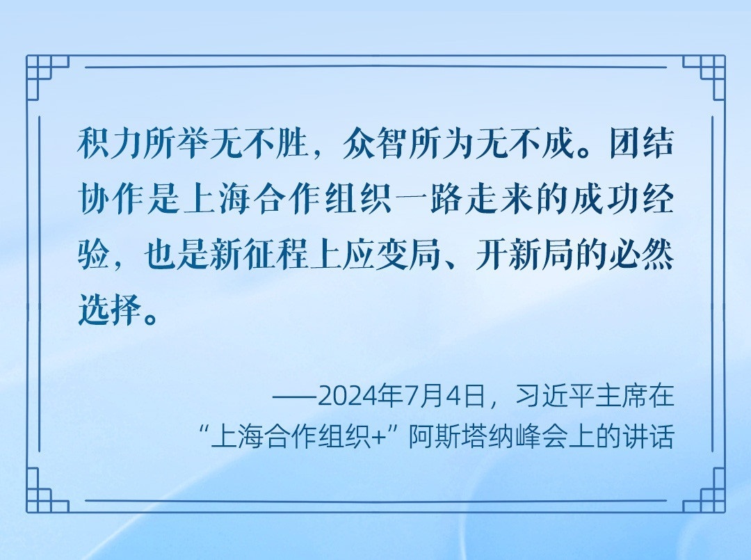 2024年至2025年,中國將接任上海合作組織輪值主席國。從聚焦地區(qū)安全拓展到推動國家政治互信、合作發(fā)展,從建設惠及各國的基礎工程到促進互利包容的經(jīng)濟全球化,中國將繼續(xù)為這條光明的“上合之路”貢獻力量和智慧。