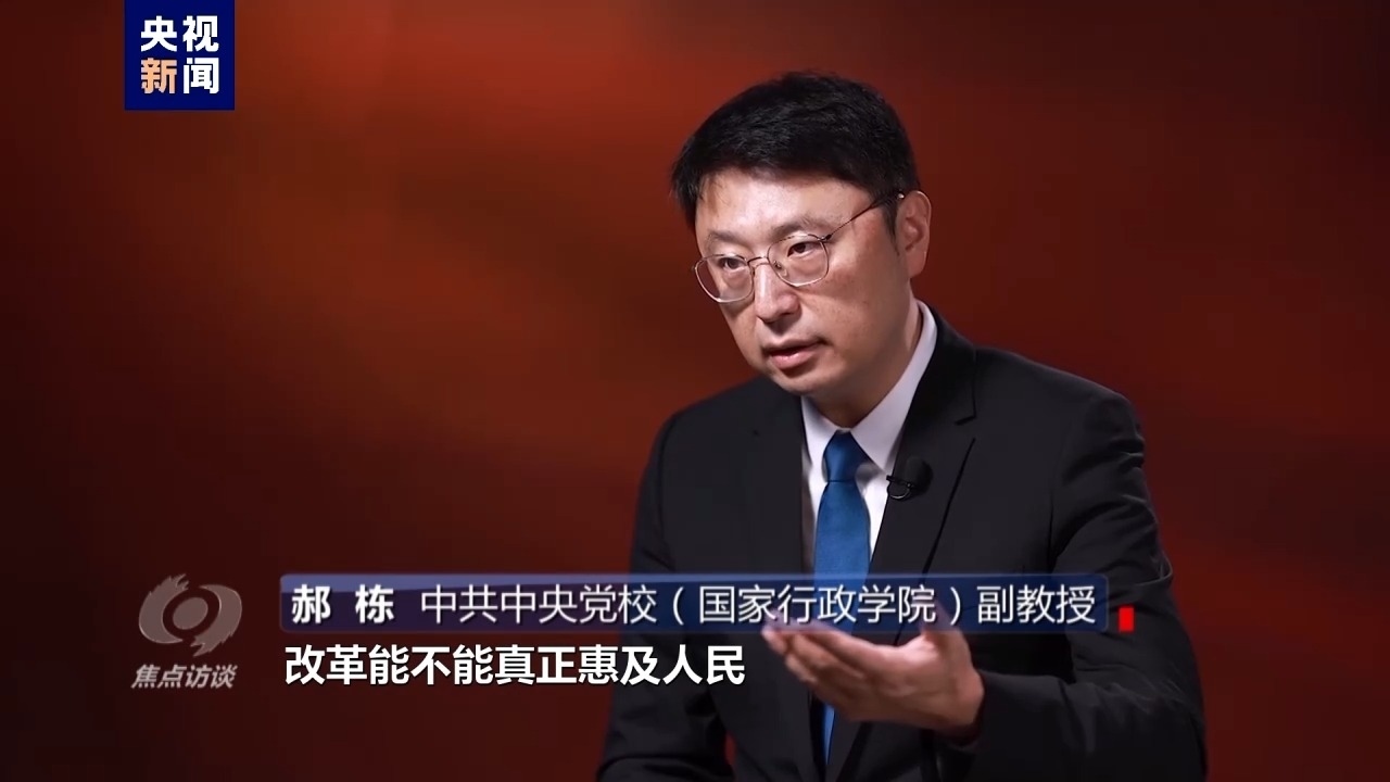 中共中央黨校(國家行政學(xué)院)副教授 郝棟:所以我們各項(xiàng)改革措施,都要緊緊圍繞著人民的需求來展開,那么我們改革到底成不成功,改革能不能真正惠及人民,這個(gè)評判標(biāo)準(zhǔn)、這把尺子是握在人民的手中。