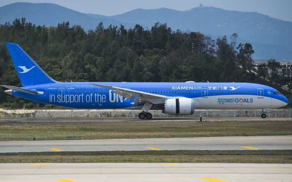 2018年3月21日,聯(lián)合國特殊涂裝飛機(jī)廈門航空“聯(lián)合夢想號(hào)”正式在福建福州長樂國際機(jī)場亮相。新華社記者 宋為偉 攝