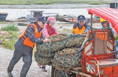 在臺風“格美”登陸前夕,福建省莆田市涵江區(qū)黨員干警幫助養(yǎng)殖戶趕在臺風來臨前搶運海產(chǎn)品回家。劉曉宇 林鴻達攝影報道