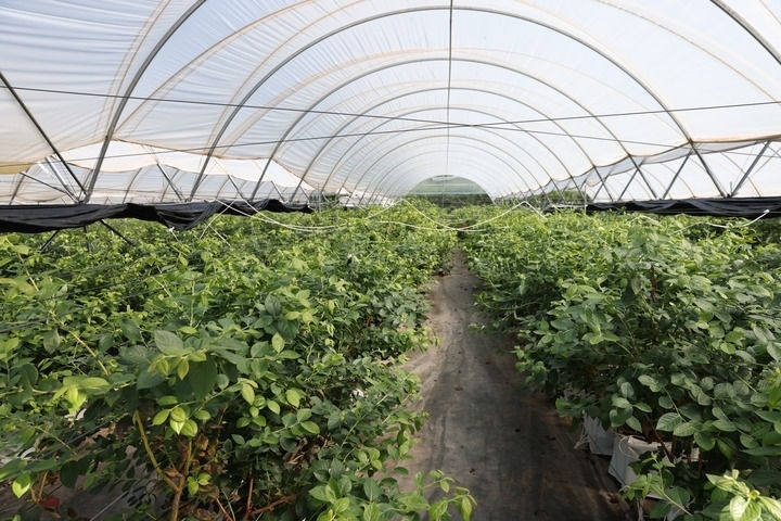 這是2024年8月1日在云南永仁縣蓮池鄉(xiāng)拍攝的藍(lán)莓種植基地。 新華社記者 呂帥 攝