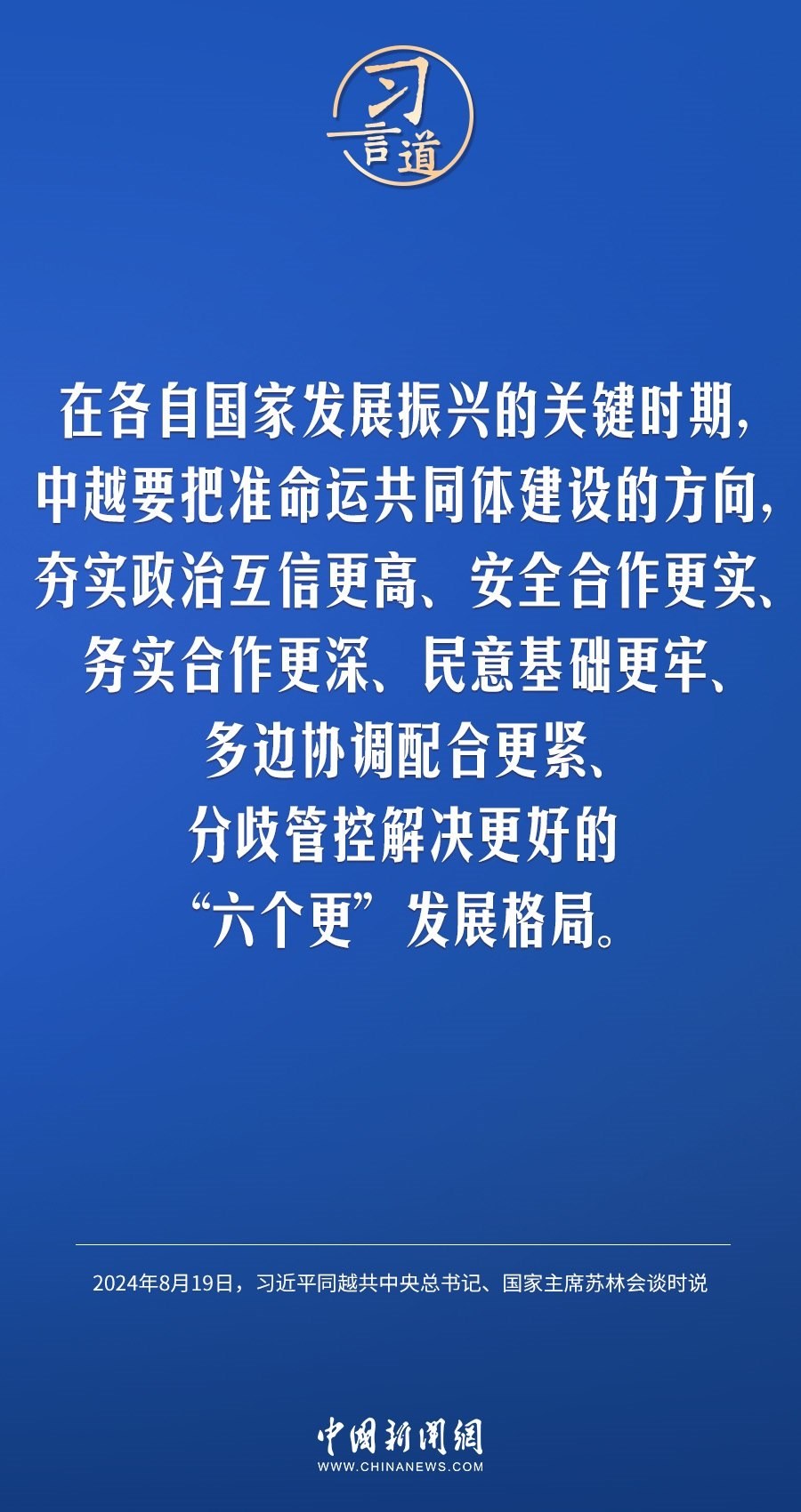 8月19日,中共中央總書記、國家主席習(xí)近平在北京人民大會堂同來華進(jìn)行國事訪問的越共中央總書記、國家主席蘇林舉行會談。習(xí)近平指出——