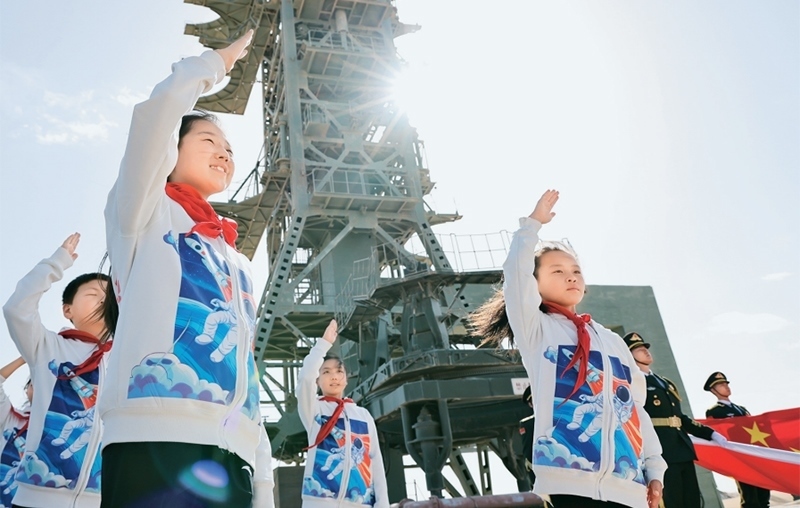 少先隊是建設(shè)社會主義和共產(chǎn)主義的預(yù)備隊。廣大少先隊員在少先隊這所大學(xué)校里立志向、修品行、練本領(lǐng),從小培養(yǎng)熱愛黨、熱愛祖國、熱愛人民的情懷,展現(xiàn)出朝氣蓬勃的精神風(fēng)貌。2024年4月24日是第九個“中國航天日”,“紅領(lǐng)巾愛祖國——我心中的五星紅旗”主題活動在中國酒泉衛(wèi)星發(fā)射中心東方紅衛(wèi)星發(fā)射場舉行。圖為當(dāng)日,來自內(nèi)蒙古、甘肅、四川等地的少先隊員在中國酒泉衛(wèi)星發(fā)射中心東方紅衛(wèi)星發(fā)射塔架下敬隊禮。 新華社記者 金立旺/攝