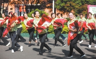 老有所養(yǎng)貴州省黔西市老年大學(xué),老年人在學(xué)習(xí)舞蹈等特色課程。周訓(xùn)超攝(影像中國(guó))